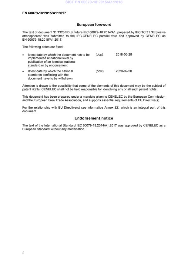 This amendment A1 modifies the European Standard EN 60079-18:2015; it was approved by CENELEC on 2017-09-28. CENELEC