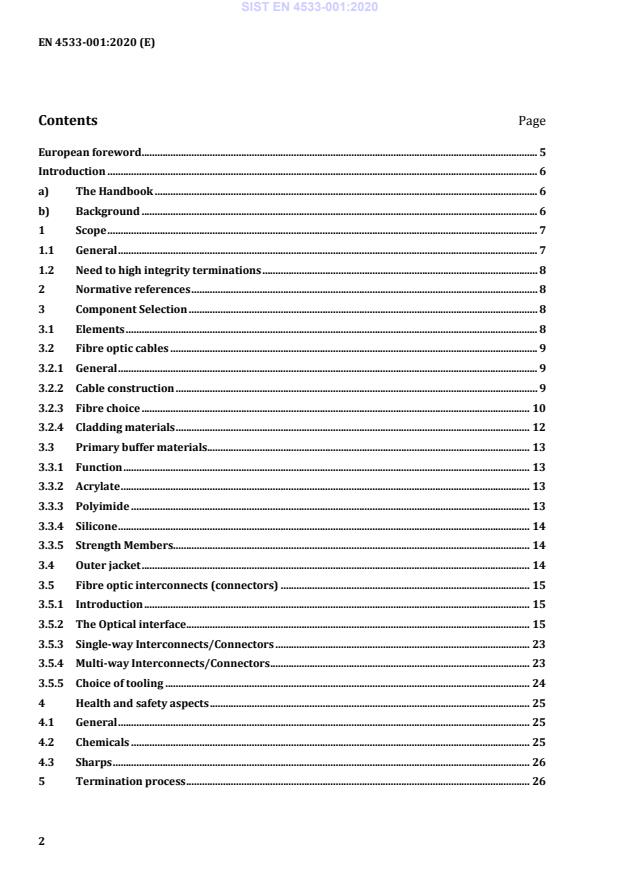 SIST EN 4533-001:2020 is a standard published by the Slovenian Institute for Standardization (SIST). Its full title is "Aerospace series - Fibre optic systems - Handbook - Part 001: Termination methods and tools". This standard covers: 1.1 General Part 001 of EN 4533 examines the termination of optical fibre cables used in aerospace applications. Termination is the act of installing an optical terminus onto the end of a buffered fibre or fibre optic cable. It encompasses several sequential procedures or practices. Although termini will have specific termination procedures, many share common elements and these are discussed in this document. Termination is required to form an optical link between any two network or system components or to join fibre optic links together. The fibre optic terminus features a precision ferrule with a tight tolerance central bore hole to accommodate the optical fibre (suitably bonded in place and highly polished). Accurate alignment with another (mating) terminus will be provided within the interconnect (or connector) alignment mechanism. As well as single fibre ferrules, it is noted that multi-fibre ferrules exist (e.g. the MT ferrule) and these will also be discussed in this part of the handbook. Another technology used to connect 2 fibres is the expanded beam. 2 ball lenses are used to expand, collimate and then refocus the light from and to fibres. Contacts are not mated together. It helps reducing the wear between 2 contacts and allows more mating cycles. This technology is less sensitive to misalignments and dust. Losses are remaining more stable than butt joint contact even if the nominal loss is higher. A Note on Terminology Current terminology in the aerospace fibre optics community refers to an optical terminus or termini. The term optical contact may be seen in some documents and has a similar meaning. However, the term contact is now generally reserved for electrical interconnection pins. The optical terminus (or termini) is housed within an interconnect (connector is an equivalent term). Interconnects can be single-way or multi-way. The interconnect or connector will generally house the alignment mechanism for the optical termini (usually a precision split-C sleeve made of ceramic or metal). The reader should be aware of these different terms. An optical link can be classified as a length of fibre optic cable terminated at both ends with fibre optic termini. The optical link provides the transmission line between any two components via the optical termini which are typically housed within an interconnecting device (typically a connector) with tight tolerancing within the alignment mechanisms to ensure a low loss light transmission. Part 001 will explain the need for high integrity terminations, provide an insight into component selection issues and suggests best practice when terminating fibres into termini for high integrity applications. A detailed review of the termination process can be found in section 4 of this part and is organised in line with the sequence of a typical termination procedure. The vast number of cable constructions and connectors available make defining a single termination instruction that is applicable to all combinations very difficult. Therefore, this handbook concentrates on the common features of most termination practices and defining best practice for current to near future applications of fibre optics on aircraft. This has limited the studies within this part to currently available ‘avionic’ silica fibre cables and adhesive filled butt-coupled type connectors. Many of the principles described however would still be applicable for other termination techniques. Other types of termination are considered further in the repair part of this handbook. It is noted that the adhesive based pot-and-polish process is applicable to the majority of single-way fibre optic interconnects connectors and termini for multi-way interconnects and connectors. They share this commonality. 1.2 Need to high integrity terminations (...)