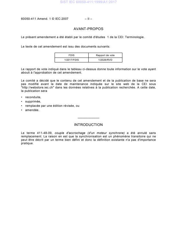 Amendement 1 - Vocabulaire Électrotechnique International - Partie 411: Machines