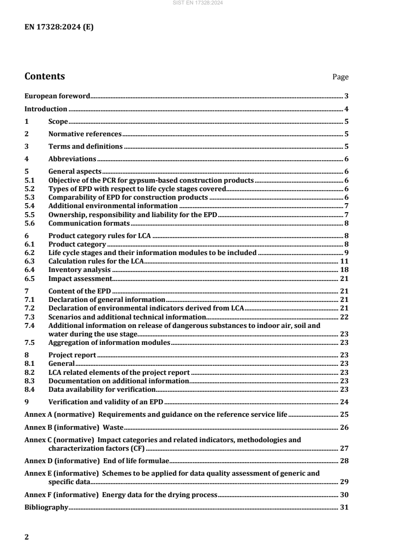 - Scope and link to EN 15804: Intended to be used together with EN 15804:2012+A2:2019. It specifies additional rules that are specific to gypsum‑based construction products.