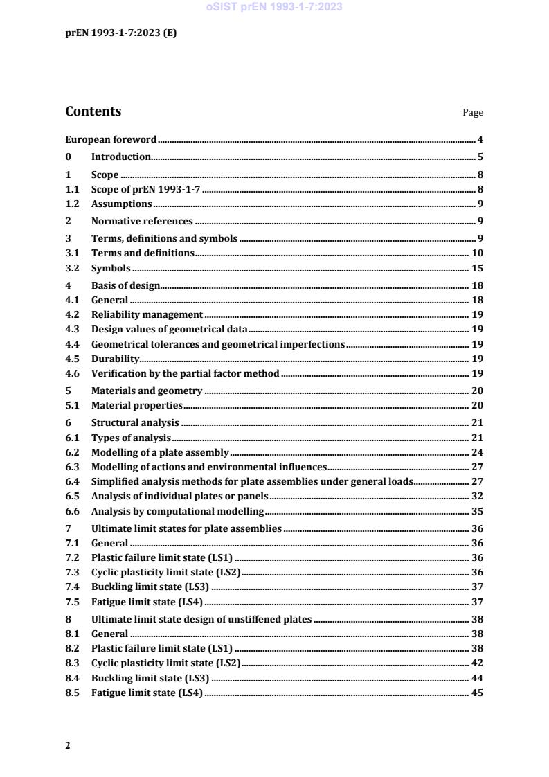 (1) prEN 1993-1-7 provides rules for the structural design of assemblies of unstiffened and stiffened steel plates whose elements are under predominantly distributed transverse loads.