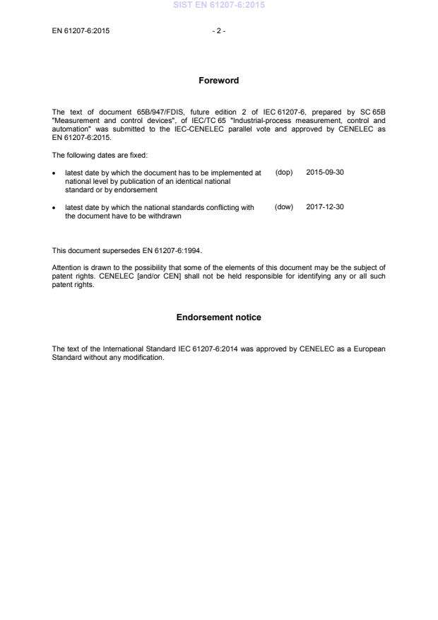This document supersedes EN 61207-6:1994. Attention is drawn to the possibility that some of the elements of this document may be the subject of patent rights. CENELEC [and/or CEN] shall not be held responsible for identifying any or all such patent rights. Endorsement notice The text of the International Standard IEC 61207-6:2014 was approved by CENELEC as a European Standard without any modification. SIST EN 61207-6:2015