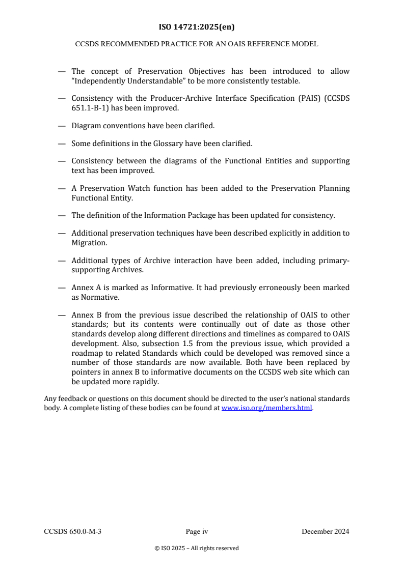 - Cross‑references and consistency with other CCSDS/ISO documents (for example Producer‑Archive Interface Specification) are noted in the standard.