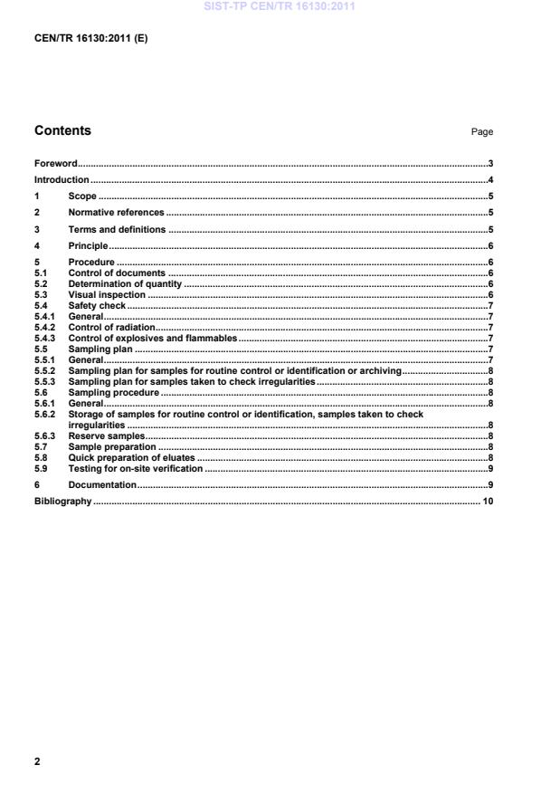 SIST-TP CEN/TR 16130:2011 is a technical report published by the Slovenian Institute for Standardization (SIST). Its full title is "Characterization of waste - On-site verification". This standard covers: This Technical Report gives guidance on the strategy for on-site verification and quality control of waste at landfills. It describes methods of visual inspection, control of documents and choice of necessity of testing by either screening methods or reference methods. It gives guidance on sampling, sample preparation and extraction for analysis. The same procedures may be useful for on-site verification and quality control of waste at treatment plants.