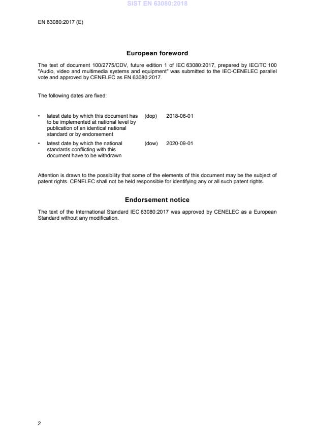 Ta slovenski standard je istoveten z: EN 63080:2017