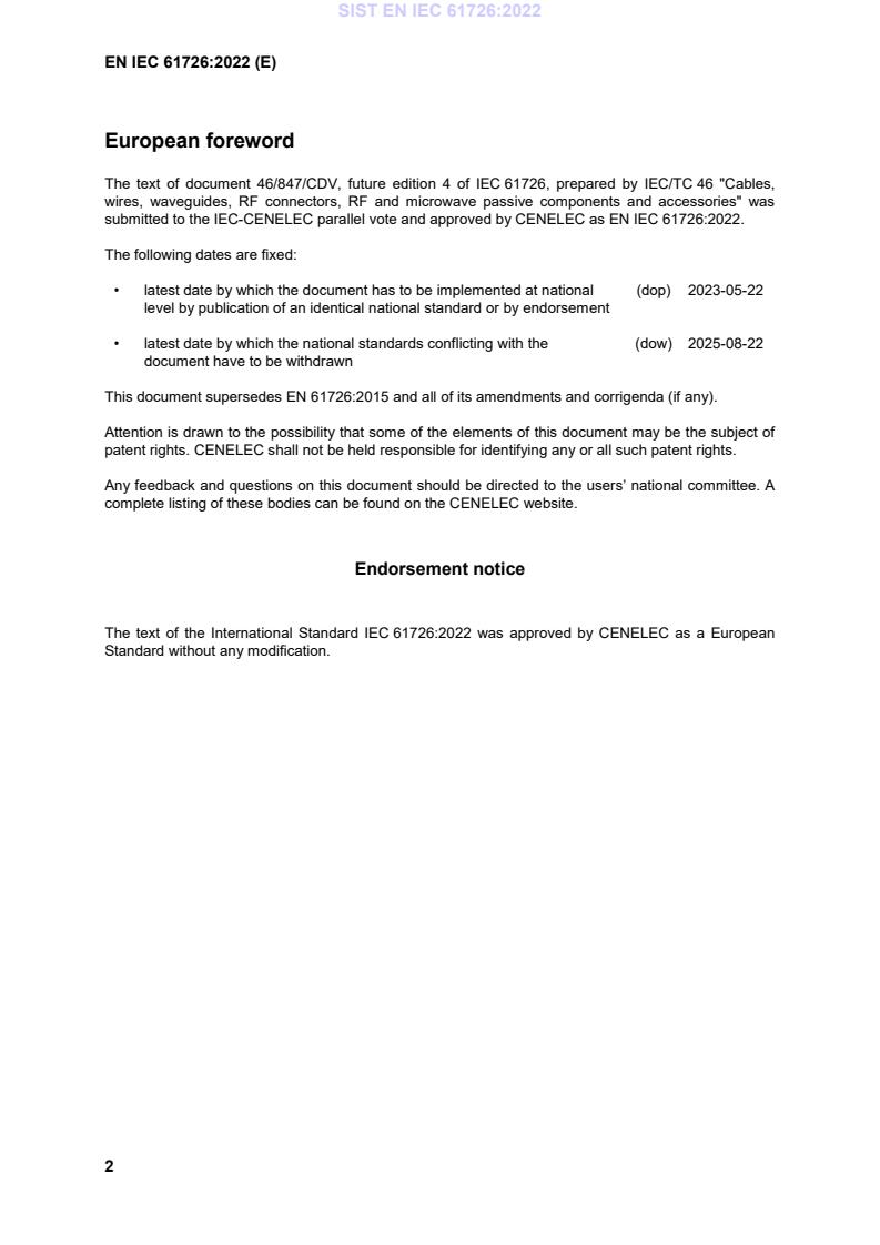 - EN IEC 61726:2022 supersedes EN 61726:2015
