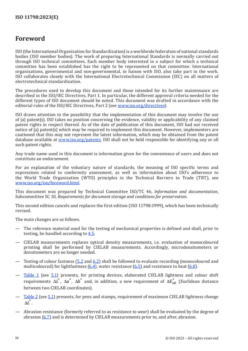Ta mednarodni standard določa zahteve in preskusne metode za vrednotenje trajnosti in obstojnosti pisanja, tiskanja in razmnoževanja na papir, ki se dolgo časa hrani v knjižnicah, arhivih in drugih zaščitenih okoljih.