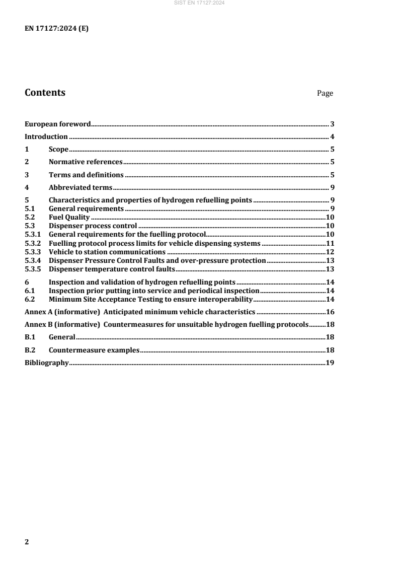 SIST EN 17127:2024 is a standard published by the Slovenian Institute for Standardization (SIST). Its full title is "Outdoor hydrogen refuelling points dispensing gaseous hydrogen and incorporating filling protocols". This standard covers: This document defines the minimum requirements to ensure the interoperability of hydrogen refuelling points, including refuelling protocols that dispense gaseous hydrogen to road vehicles (e.g. Fuel Cell Electric Vehicles) that comply with legislation applicable to such vehicles. The safety and performance requirements for the entire hydrogen fuelling station, addressed in accordance with existing relevant European and national legislation, are not included in this document. This document applies to hydrogen refuelling points dispensing gaseous hydrogen to vehicles compliant with UN R134 (Regulation No. 134), UN R134 or Regulation (EC) No 79/2009. NOTE 1 Guidance on considerations for hydrogen fuelling stations is provided in ISO 19880 1:2020. NOTE 2 Units used in this document follow SI (International System of Units).