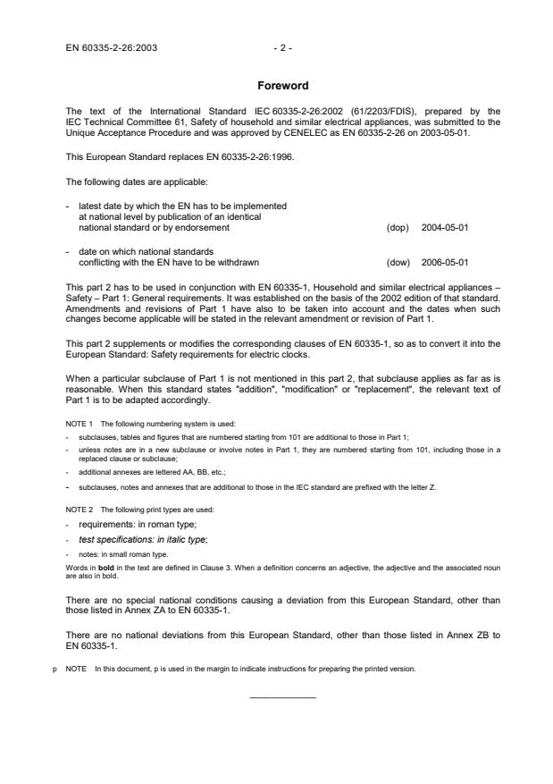 The text of the International Standard IEC 60335-2-26:2002 was approved by CENELEC as a European