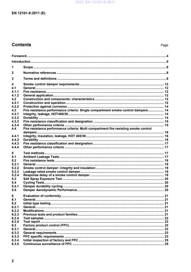 Clauses of this European Standard addressing the provisions of the EU Construction Products Directive . 31ZA.1 Scope and relevant characteristics . 31ZA.2 Procedure for the attestation of conformity of smoke control dampers . 34ZA.2.1 System of attestation of conformity . 34ZA.2.2 EC certificate of conformity and EC declaration of conformity . 35ZA.3 CE marking and labelling. 35Bibliography . 38 SIST EN 12101-8:2011