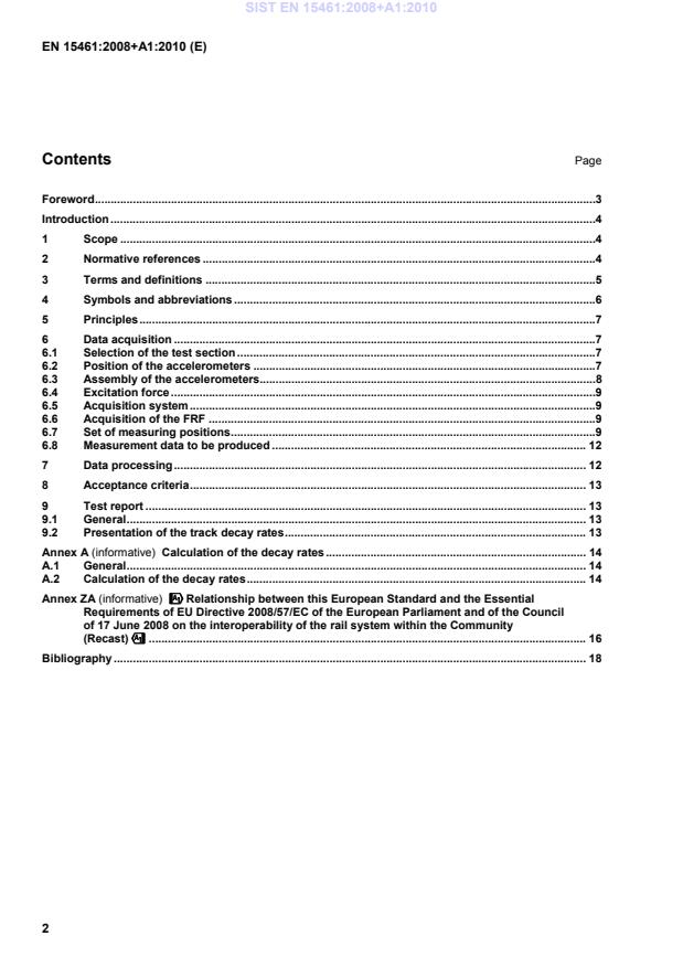 !!!!Relationship between this European Standard and the Essential Requirements of EU Directive 2008/57/EC of the European Parliament and of the Council of 17 June 2008 on the interoperability of the rail system within the Community (Recast)"""" . 16Bibliography . 18 SIST EN 15461:2008+A1:2010