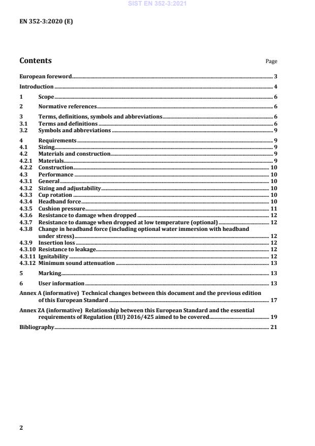 SIST EN 352-3:2021 is a standard published by the Slovenian Institute for Standardization (SIST). Its full title is "Hearing protectors - General requirements - Part 3: Earmuffs attached to head protection and/or face protection devices". This standard covers: This document specifies requirements for construction, design, performance, marking and user information for earmuffs attached to head protection and/or face protection devices, hereinafter referred to as ‘mounted earmuffs’. In particular, it specifies requirements regarding the sound attenuation of mounted earmuffs, measured in accordance with EN ISO 4869-1:2018. The document does not apply to earmuffs outside the size range of headsizes as defined in this standard. Because one model of earmuffs designed to be attached to head protection and/or face protection devices can be fitted to a number of other models and sizes of the carrier, this part of the standard sets out a series of physical and acoustic requirements for earmuffs when fitted to the specified model(s) or size(s) of head protection and/or face protection device. All requirements apply to earmuffs fitted to one of the specified models or sizes of head protection and/or face protection device (the basic combination). An abbreviated set of requirements applies to the same model of earmuffs when fitted to the other specified models or sizes of head protection and/or face protection device (the supplementary combinations). Ergonomic aspects are addressed by taking into account, within the requirements, the interaction between the user, the device and, where possible, the working environment in which the device is likely to be used (see Annex ZA and EN 458).