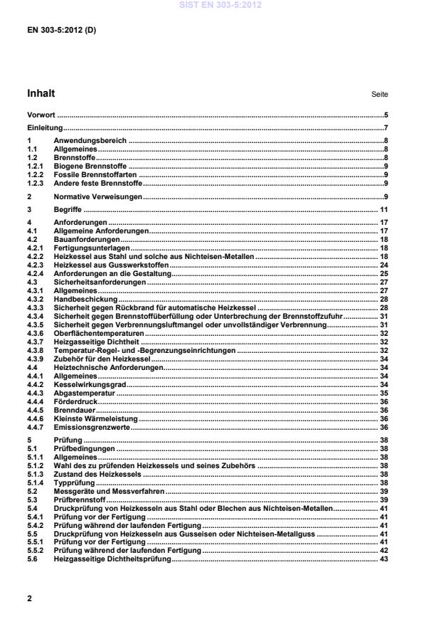 A–Abweichungen . 65 C.1 Allgemeines . 65 C.2 Abweichungen für Österreich: . 65 C.2.1 Allgemeines . 65 C.2.2 Kesselwirkungsgrad bei Nennwärmeleistung und kleinster Wärmeleistung . 65 C.2.3 Emissionsgrenzwerte. 66 C.3 Abweichungen für Kroatien . 67 C.4 Abweichungen für Dänemark . 68 C.4.1 Abschnitt 4.4.2 Kesselwirkungsgrad . 68 SIST EN 303-5:2012