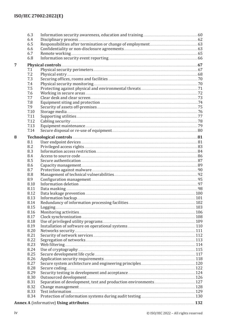 - People controls: screening, employment terms, awareness, training, remote working, reporting and disciplinary processes.