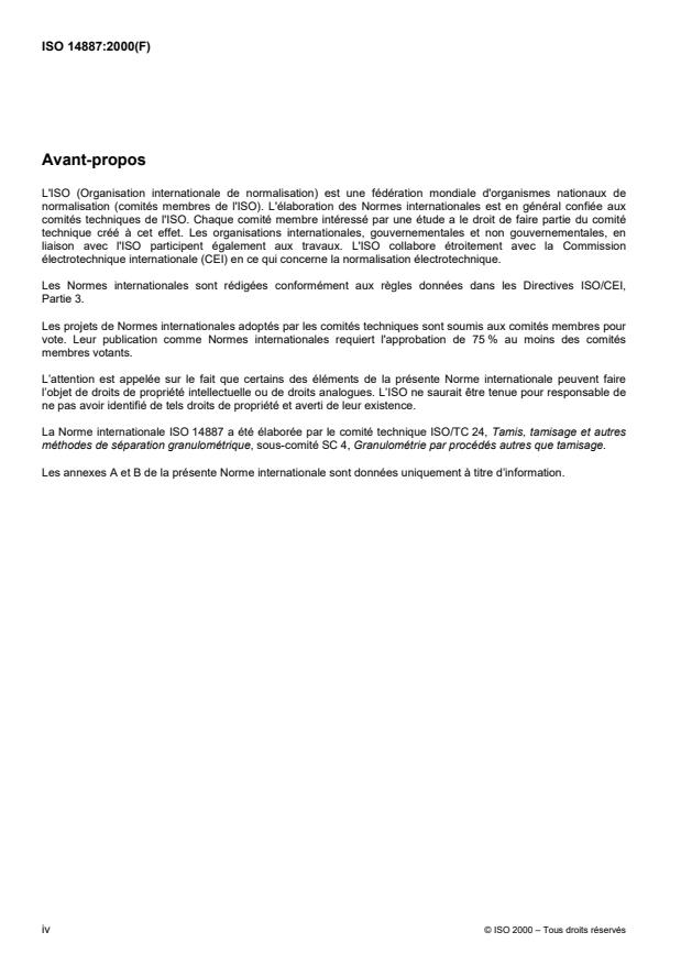 Keywords: ISO 14887:2000, sample preparation, dispersing procedures, powders in liquids, particle size analysis, deagglomeration, dispersing agents, dispersion stability.