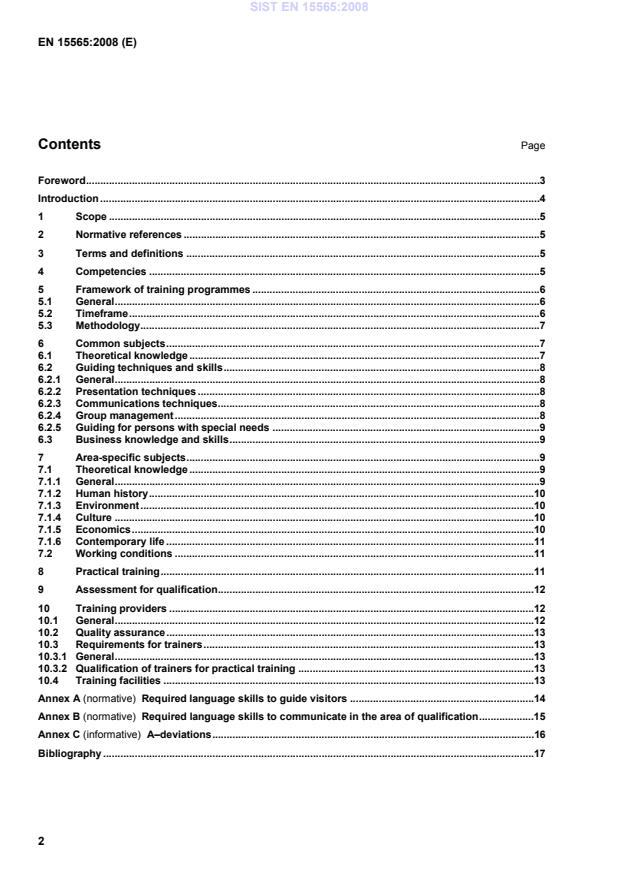 SIST EN 15565:2008 is a standard published by the Slovenian Institute for Standardization (SIST). Its full title is "Tourism services - Requirements for the provision of professional tourist guide training and qualification programmes". This standard covers: This European Standard specifies minimum requirements for the provision of professional tourist guide training and qualification programmes. NOTE The requirements for training programmes specified in this European Standard are minimal; they do not preclude the provision of additional training or the assessment of additional competencies.