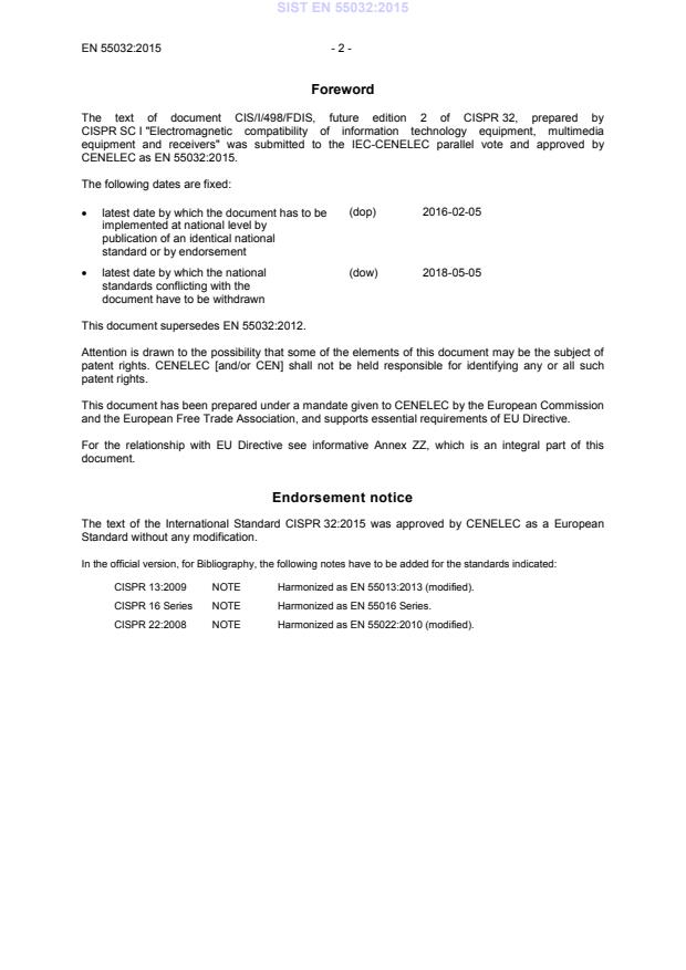SIST EN 55032:2012 - Electromagnetic compatibility of multimedia equipment - Emission requirements - Effective Date